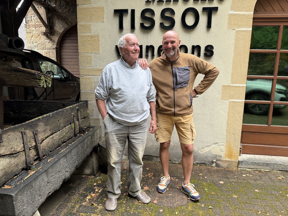| On commence notre voyage au Domaine Hubert Lignier ou Laurent nous fait déguster les vins, avec le sourire ! | Deux générations, deux sourires, une même passion : André (DD) et Stéphane Tissot.